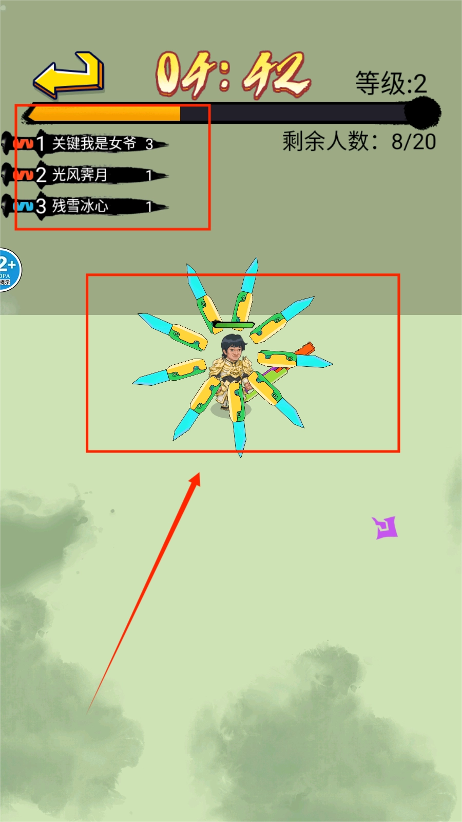 2、你得持续让自己的萝卜刀变得更强,另外还要留意他人的攻击,左上角显示的是排名。