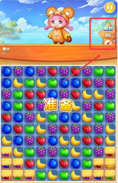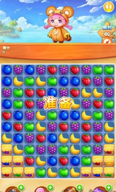 3. 点击水果进行交换,只要凑够三个就能消除,要是一行里能多排几个就再好不过啦,别忘了留意时间哦。