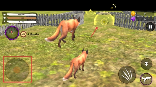 使用左侧的虚拟摇杆可以精准操控北极狐的移动方向,右侧的功能键则用于完成觅食、互动等核心操作。