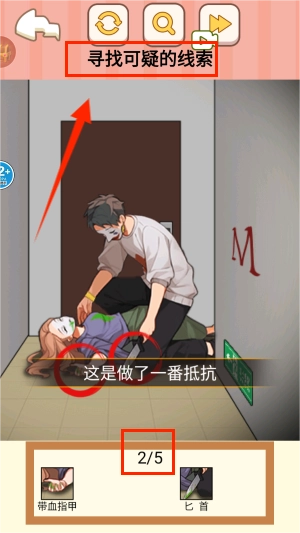 3、通过观察和推理找出5个可疑的线索,方可通关。