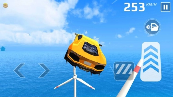 在高空特技场景里,要留意速度表,通过方向键把控车辆平衡,碰到风力发电机这类障碍物时,提前调整行进方向,依靠加速键维持高速状态通过。