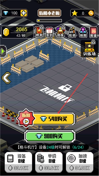 4、在拓展机厅时,若未满足格斗机厅的解锁条件,可点击折扣540购买按钮,消耗对应钻石提前获取该机厅,加快机厅的拓展进度。