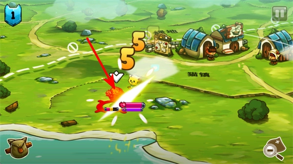 4、战斗时,按照红色箭头的指引行动,通过操作攻击按钮来攻击怪物,把敌人打败就能达成关卡目标。