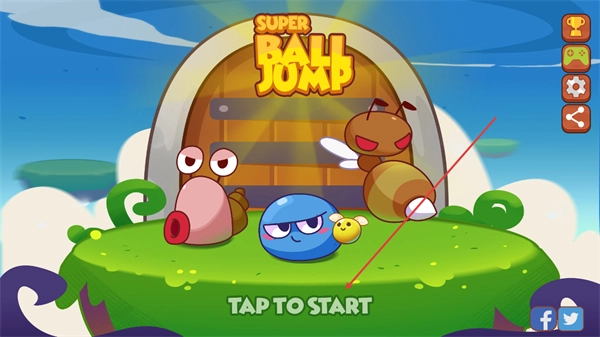 1、进入超级跳球弹跳冒险游戏界面后,点击“TAPTOSTART”按钮,就能开启这款弹跳类游戏的游玩流程。