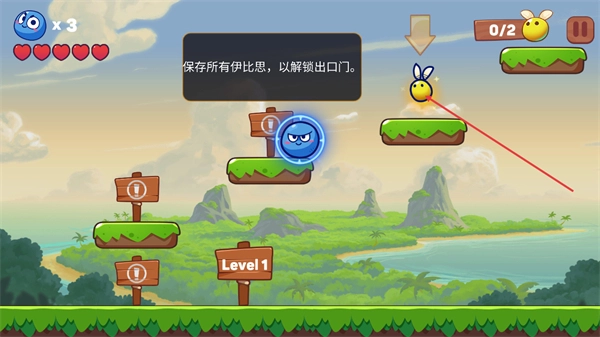 4、操控蓝色球移动来收集伊比思,待全部集齐后就能解锁出口门,从而完成这一关卡。