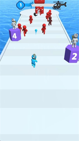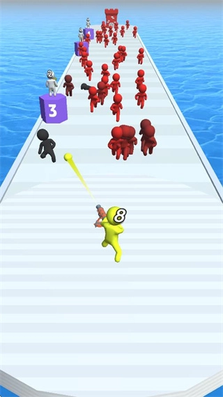 你可以通过虚拟摇杆操控士兵移动,士兵会自动发射炮弹,精准攻击行进路线上的红色敌军单位。