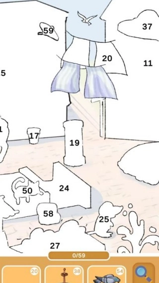 玩家需在带有数字分区标识的线稿画布上,挑选与编号对应的贴纸进行粘贴,一步步完成整个艺术作品的创作。