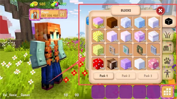 材料系统涵盖十二大类、三百余种装饰方块,无论是马卡龙色调的墙体,还是带有卡通纹理的地板,都能自由搭配组合。