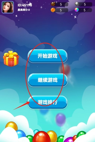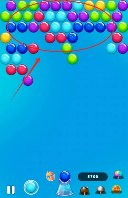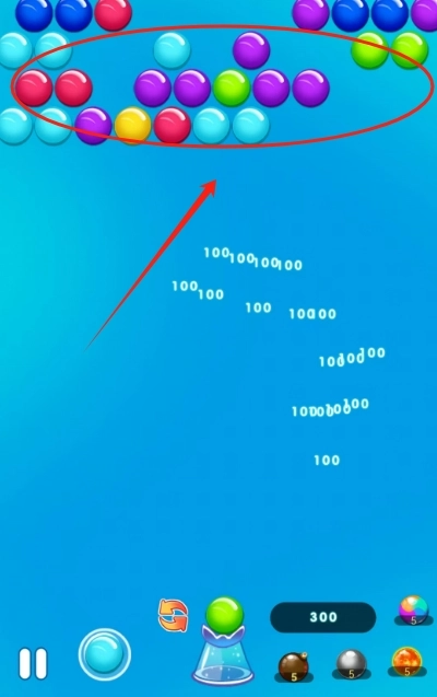 2、点击同颜色消除的球体,完成泡泡的消除,发射彩色泡泡完成同色消除。