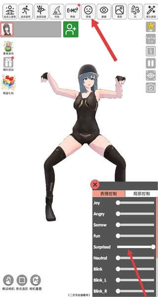 4、点击表情设置按钮,可拖动滚轮调整表情参数,完成角色自定义效果。