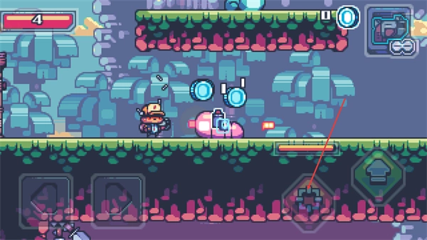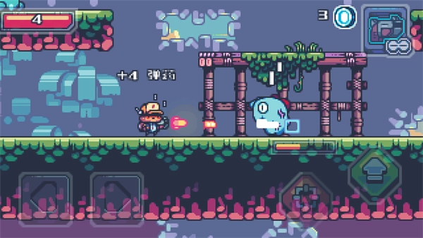 核心操作涵盖横移、跳跃、射击和闪避,双击方向键可触发无敌闪避效果,跳跃过程中能够攀附墙壁,射击时具备真实的后座力反馈。操作设计简洁直观,同时预留了进阶技巧的探索空间,既能满足新手快速上手的需求,也能为资深玩家提供深度操作的乐趣。