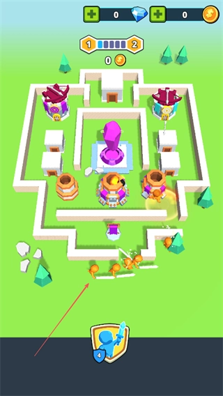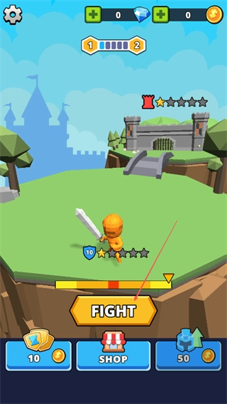 1、点击FIGHT按钮开启战斗,操控橙色角色为进攻敌方城堡做好准备。