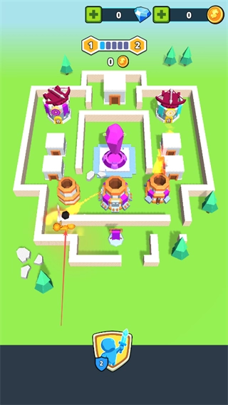 3、操控角色对敌方防御塔发起攻击,以此降低其生命值,从而推动战场进程向前发展。
