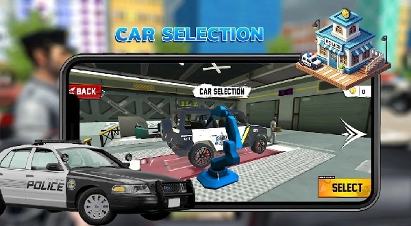 通过任务奖励或金币购买升级引擎、悬挂、轮胎等部件,提升警车性能。还可定制警车外观(如涂装、贴纸、警灯)。