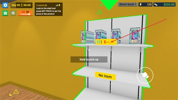 1、在该教程界面中,查看货架上的商品,按照Tutorial的提示,准备执行SETPRICE操作来设置商品的售价。