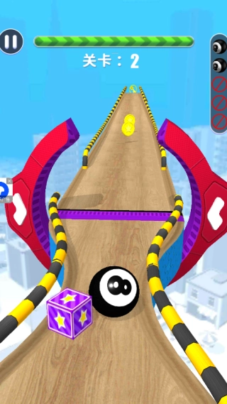 滑动屏幕操控小球持续前进,避开障碍物并收集金币。
