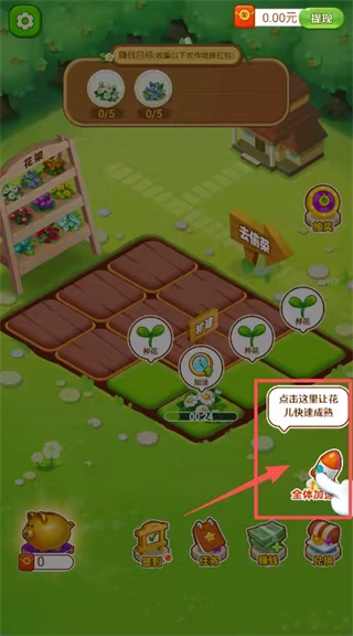 当多种作物处于生长阶段时,点击全体加速火箭图标并消耗相应道具,就能显著减少所有作物的成熟时长,从而实现大批量作物的快速采收。
