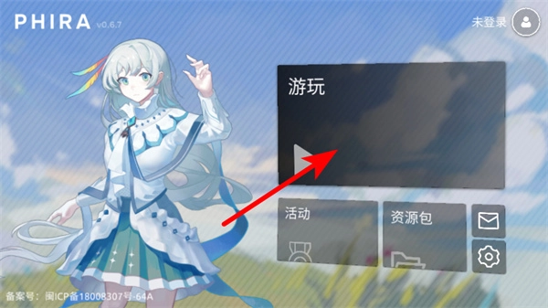 1、在游戏主界面,点击红色箭头指向的游玩的区域的播放按钮,进入关卡选择界面。