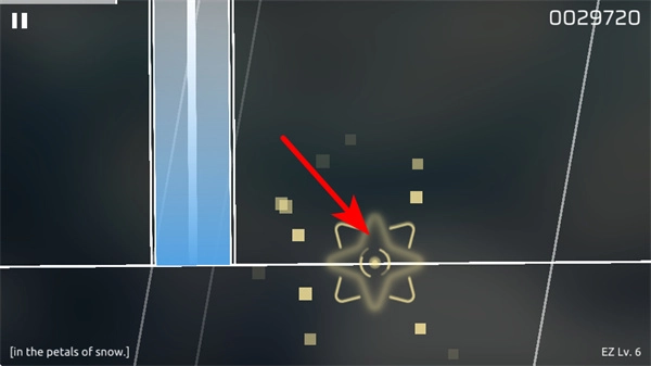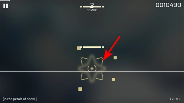 4、后续音符图案到达判定线时,继续点击红色箭头指向的区域,保持连击以获得更高分数。