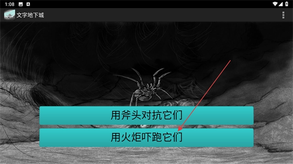 3、面对蜘蛛类敌人时,既可以用斧头主动发起攻击与之对抗,也可以使用火炬将其吓跑,以此规避战斗、推进流程。