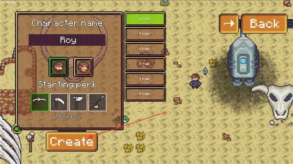 2、在角色创建界面,选定角色外观与Startingperk后,点击Create按钮,完成角色创建进入游戏。