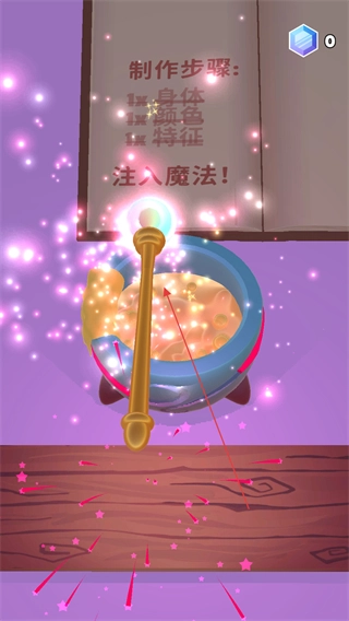 2、搅拌魔法锅内的材料,等待进度条加载,推进颜色部分的制作进程。