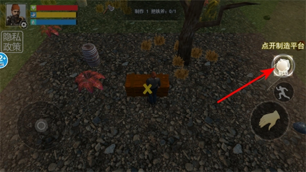 4、点击制造平台选项,这是开启制作功能的重要操作,点击后可进入道具制作界面,利用已有资源制作生存所需工具装备。