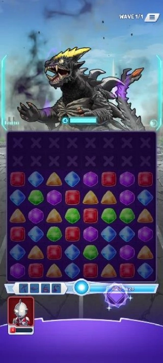 通过三消的战斗机制,积攒能量释放奥特技能,体验策略与快感交织的战斗乐趣。