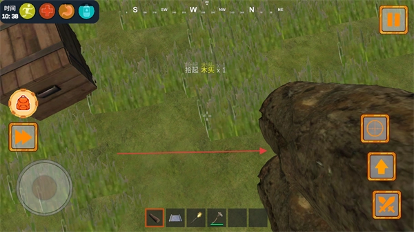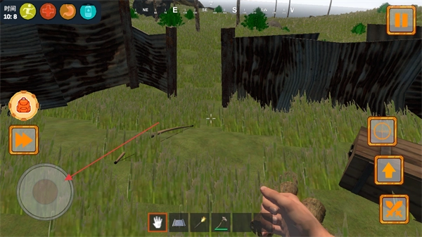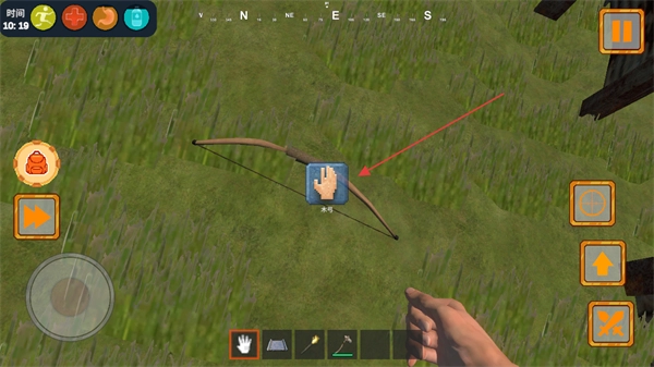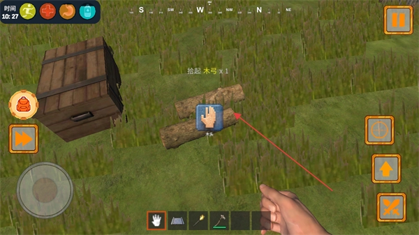 2、点击道具上的拾取按钮,就能获取木弓、木头这类生存物资。