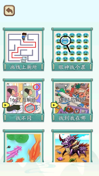 除了常规的画线解谜外,还得挑战找字关卡——要从一堆相似的文字里找出不一样的字符,只有完成这样的特殊挑战,才能解锁后面的关卡。