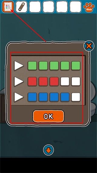 4、根据收集到的线索,调整面板颜色,点击OK即可解锁机关。