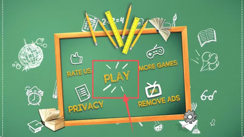 看游戏主界面,点击中间红框标注的PLAY按钮就能开始游戏,界面周围还有RATE US等选项。