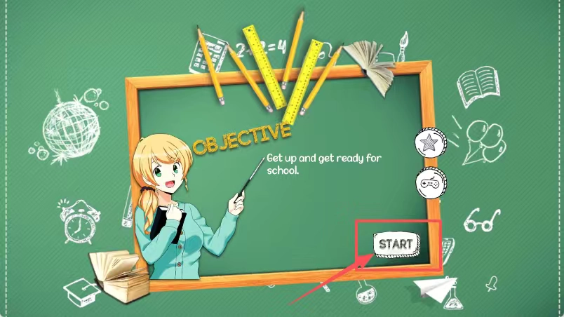 查看学习目标页面,点击带有红色边框标注的START按钮即可开启游戏,游戏的目标是完成上学前的准备工作。