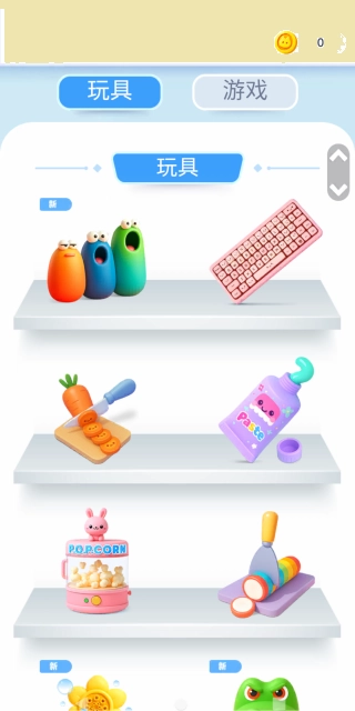 可以选择游玩玩具和游戏两个部分,具体内容如下图所示,其中游戏部分的选择尤为丰富。