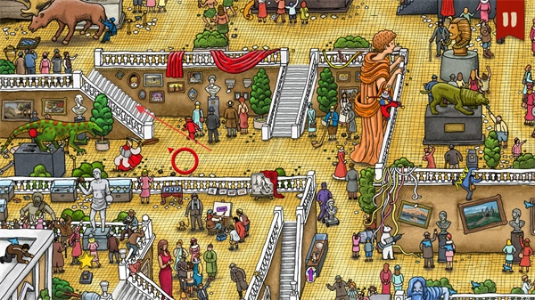 1、在场景里定位到身着红色衣物的目标,依照提示逐步推进,达成当前阶段的搜寻任务。