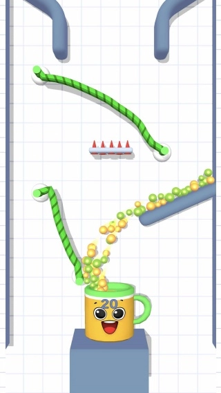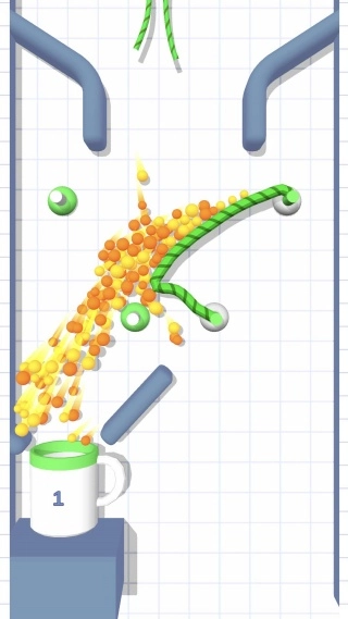 跳跳球在下落时遵循真实的物理规律,碰到路径边缘会反弹,遇到斜坡会加速下滑,要是落入平台的缝隙就会垂直掉落。