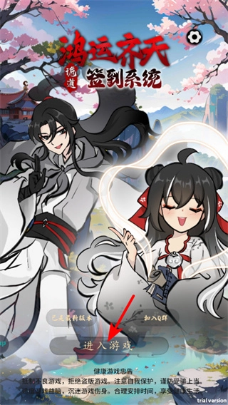 1、点击“进入游戏”按钮,即可开启“鸿运齐天”的修仙玩法,这是进入天赋选择与资源积累流程的基础操作,后续需借助天赋搭配与日常玩法来推进修仙进度。