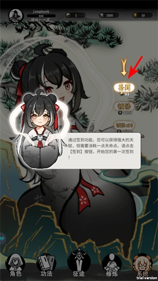 3、在主界面点击系统入口,就能进入签到等功能界面,这是获取日常资源的关键操作,坚持参与日常玩法可以快速积累修仙所需的物资。