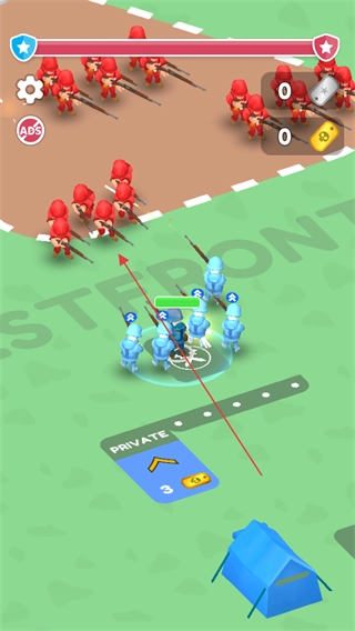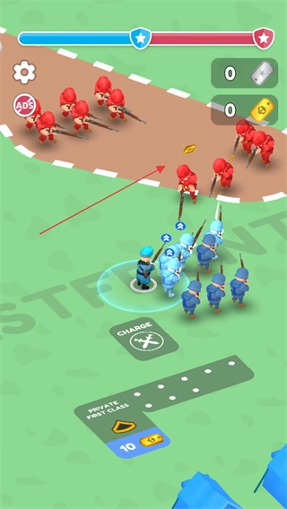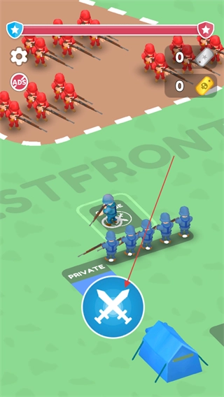 1、点击交叉剑图标,指挥蓝色士兵部队向红色敌人发起进攻。