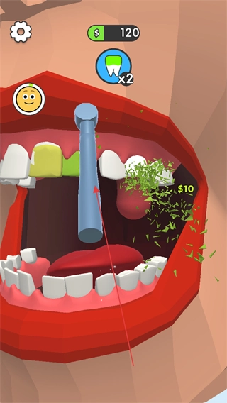 1、使用工具清理患者牙齿上的污渍,每次清理可获得金币和牙齿修复进度。