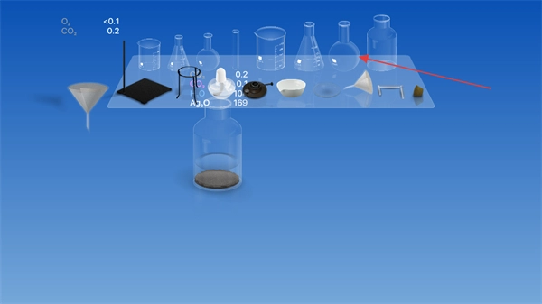 2、滑动上方列表可以挑选想要使用的化学用具,点击拖动到下方进行使用。