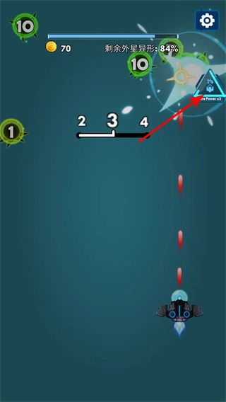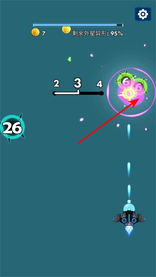 3、攻击外星异形,瞄准带有数字标识的外星异形如数字6的异形,降低其剩余比例,完成战斗任务,获取奖励。