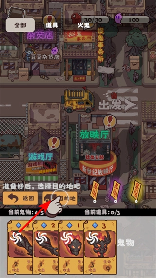 2、准备好鬼物后,点击目的地按钮,就能进入地图选择界面,这可是开启冒险旅程的关键一步。