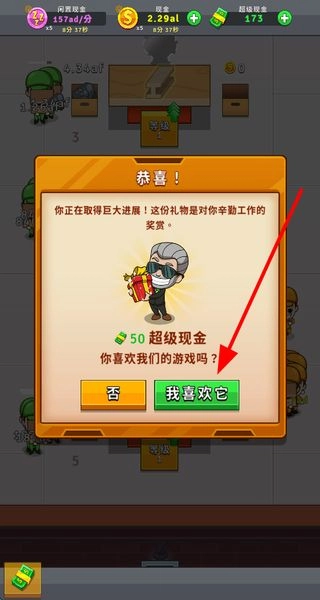 4、取得大进展时会获得奖励,比如超级现金,还可对游戏表达喜好,与游戏进行互动。