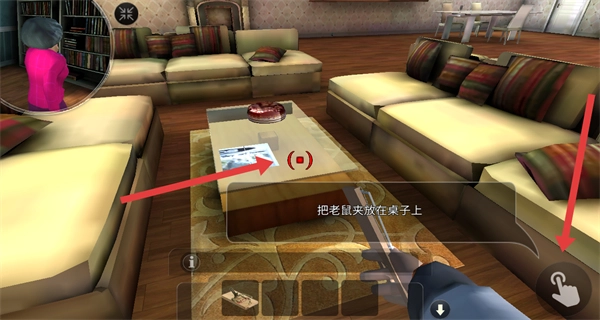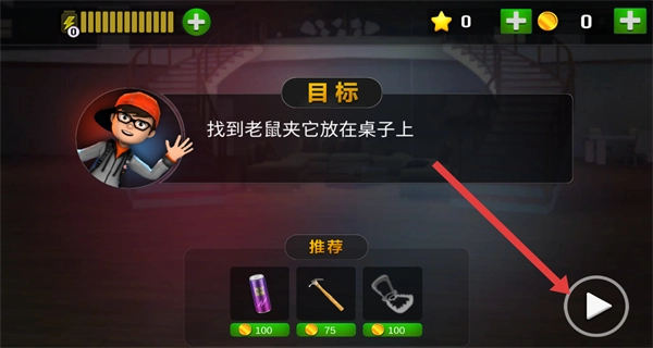 1、点按关卡界面的开始按键进入游戏,清楚本关任务是找到老鼠夹并放置于桌子上。