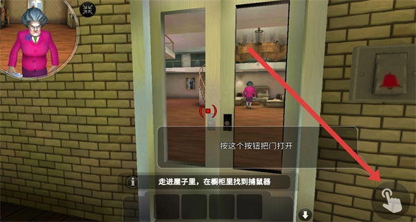 2、按下门旁边的按钮来开启房门,进入屋内后,到橱柜里找到捕鼠器。