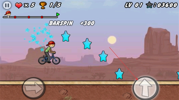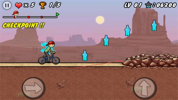 单车男孩是一款横版自行车跑酷类休闲益智作品,以障碍躲避分数收集为核心玩法,操作逻辑简单易上手,使用者操控自行车在横版赛道上前进,通过触发加速、跳跃等动作,避开石头、箱子、乌鸦等沿途障碍物,同时收集星星与奖杯提升分数,包含三种不同主题的关卡,搭配上百个差异化关卡设计。