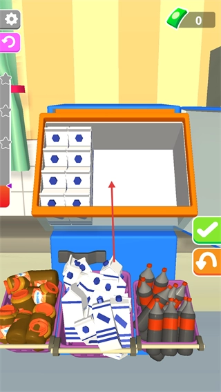 2、从下方的物品篮中选取对应物品,向上或向下滑动将物品摆放整齐。