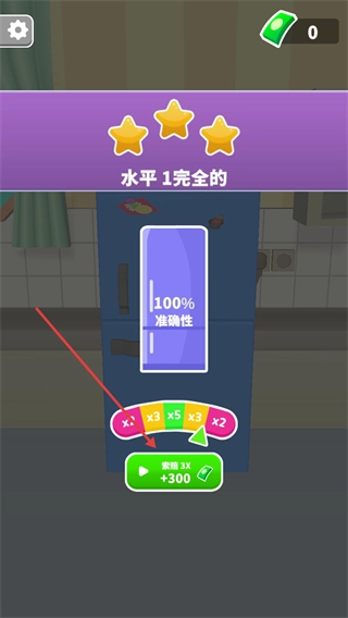4、成功装满冰箱后,可获得星级评价和金币奖励,点击索赔按钮可获取额外奖励。