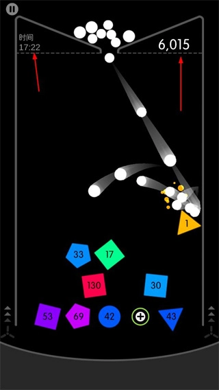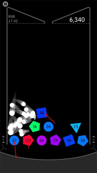 2、弹球撞击带有数字标识的砖块,让砖块上的数字逐步递减,当数字变为零时砖块就会消失,这是积累高分的重要前提。